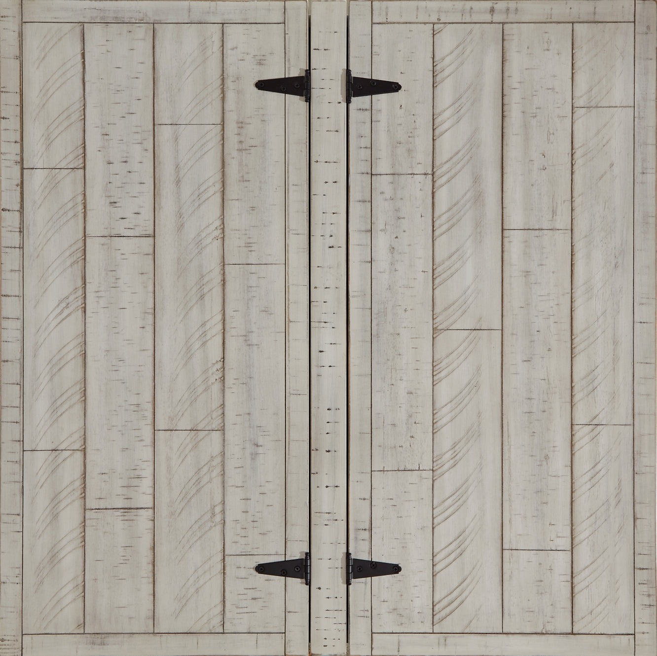 Double up on form and function with this square coffee table with storage. Its dual-lid tabletop provides easy access to the roomy storage space. Crafted with a distressed whitewash finish, crossbuck detailing and metal bracket appliques, this generously scaled coffee table is rustic farmhouse living at its best.