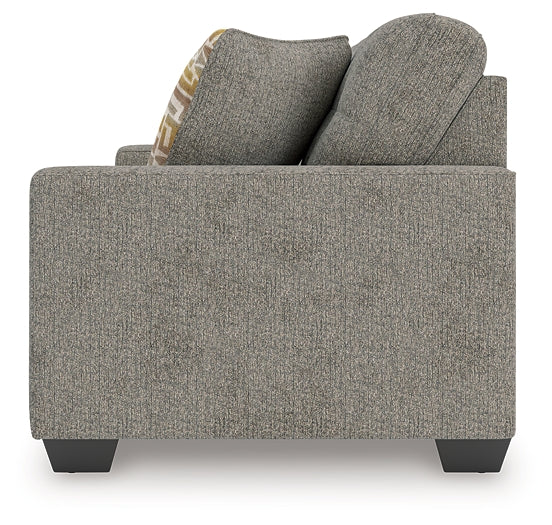 Details Corner-blocked frame, Attached back and loose seat cushions, High-quality foam cushions wrapped in poly fiber, Accent pillows included, Pillows with soft polyfill, Polyester upholstery, Exposed feet with faux wood finish, Platform foundation system resists sagging 3x better than spring system after 20,000 testing cycles by providing more even support, Smooth platform foundation maintains tight, wrinkle-free look without dips or sags that can occur over time with sinuous spring foundations