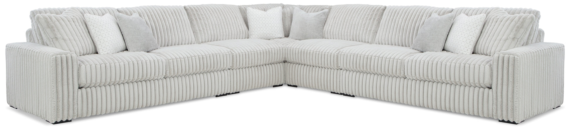 Details | Includes 5 pieces: left-arm facing sofa, 2 armless chairs, wedge and right-arm facing sofa, "Left-arm" and "right-arm" describe the position of the arm when you face the piece, Corner-blocked frame, Loose reversible seat and back cushions, High-density foam cushions wrapped in feather-fiber blend jacket, Accent pillows included, Pillows with feather-fiber blend, Polyester upholstery, Exposed feet with faux wood finish, Platform foundation system resists sagging 3x better than spring system after 20,000 testing cycles by providing more even support, Smooth platform foundation maintains tight, wrinkle-free look without dips or sags that can occur over time with sinuous spring foundations | |